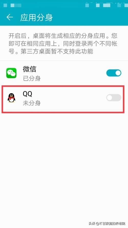 4、应用分身栏目内有可以分身应用的名称,我们选择”QQ“。