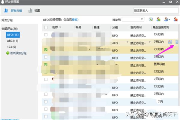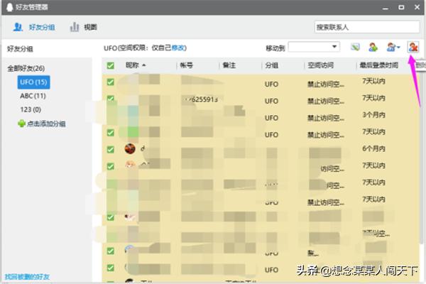 4.点击右上角的"删除好友"图标,即可全部删除选中好友。