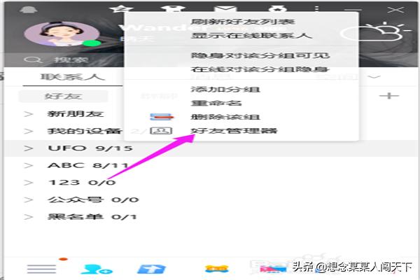 2.选择你要删除的好友所分组,然后右击选择"好友管理器"。
