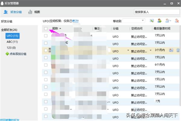 3.点击昵称左侧的"□"即可全选所有好友。